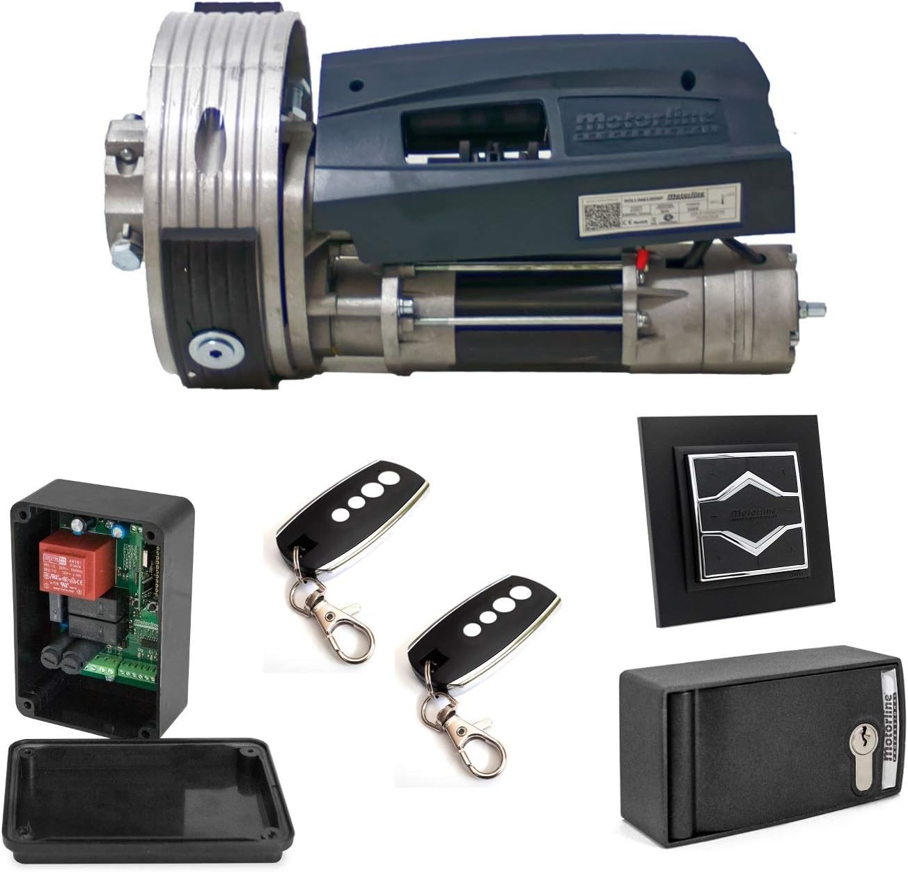 Kit Motorline 160 SP moteur pour porte de garage enroulable ou volet métallique jusqu’à 160 kg, avec bouton poussoir montée/descente